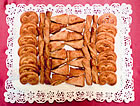 Pâte de farine et margarine, étendue en feuilles très fines et superposées plusieurs fois. Les petits gâteaux les plus connus sont les lacets et les lunettes.