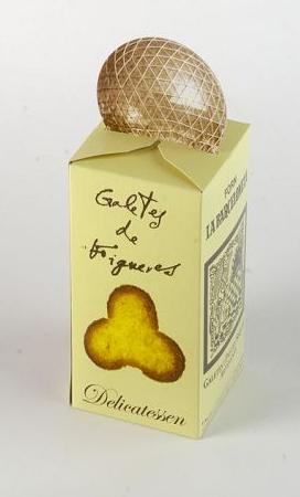 Caja de galletas Delicatessen, muy típica de nuestra tienda, y que hemos querido homenajear al famosísimo pintor de nuestra ciudad, con unas galletas muy crujientes. Las galletas interiores representan el pan de tres puntas de la fachada del museo Figuerense.