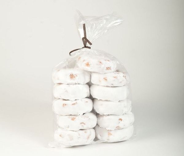 Pieza de pasta dulce y redonda, glaseada con una fina capa de azúcar glas, dando un selecto toque de pasta tradicional de las pastelerías de los años 60.